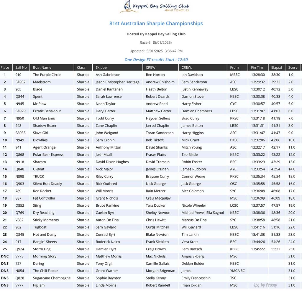 Race #6 - Sunday 5th January 2025.