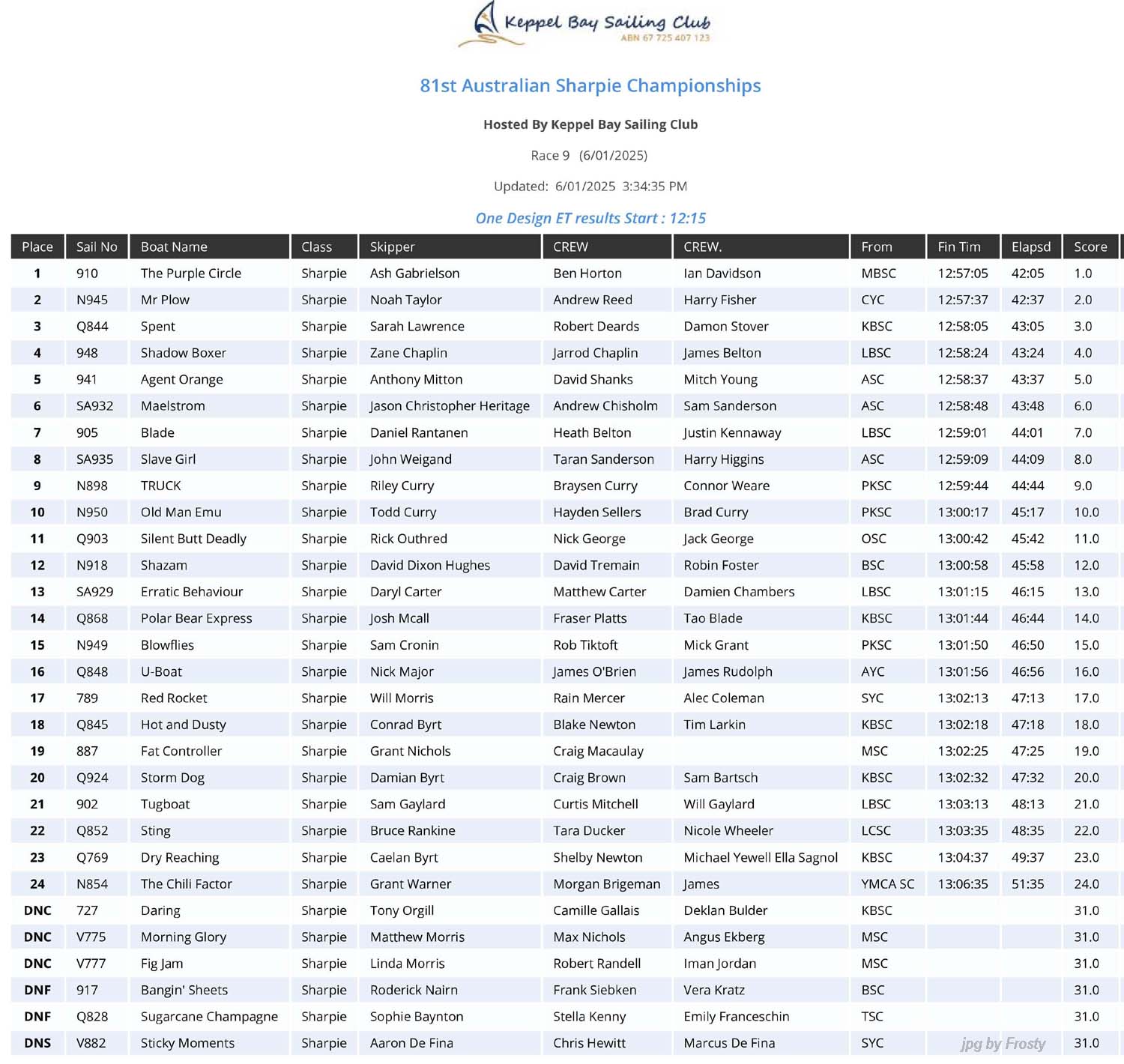 Race #9 - Monday 6th January 2025.