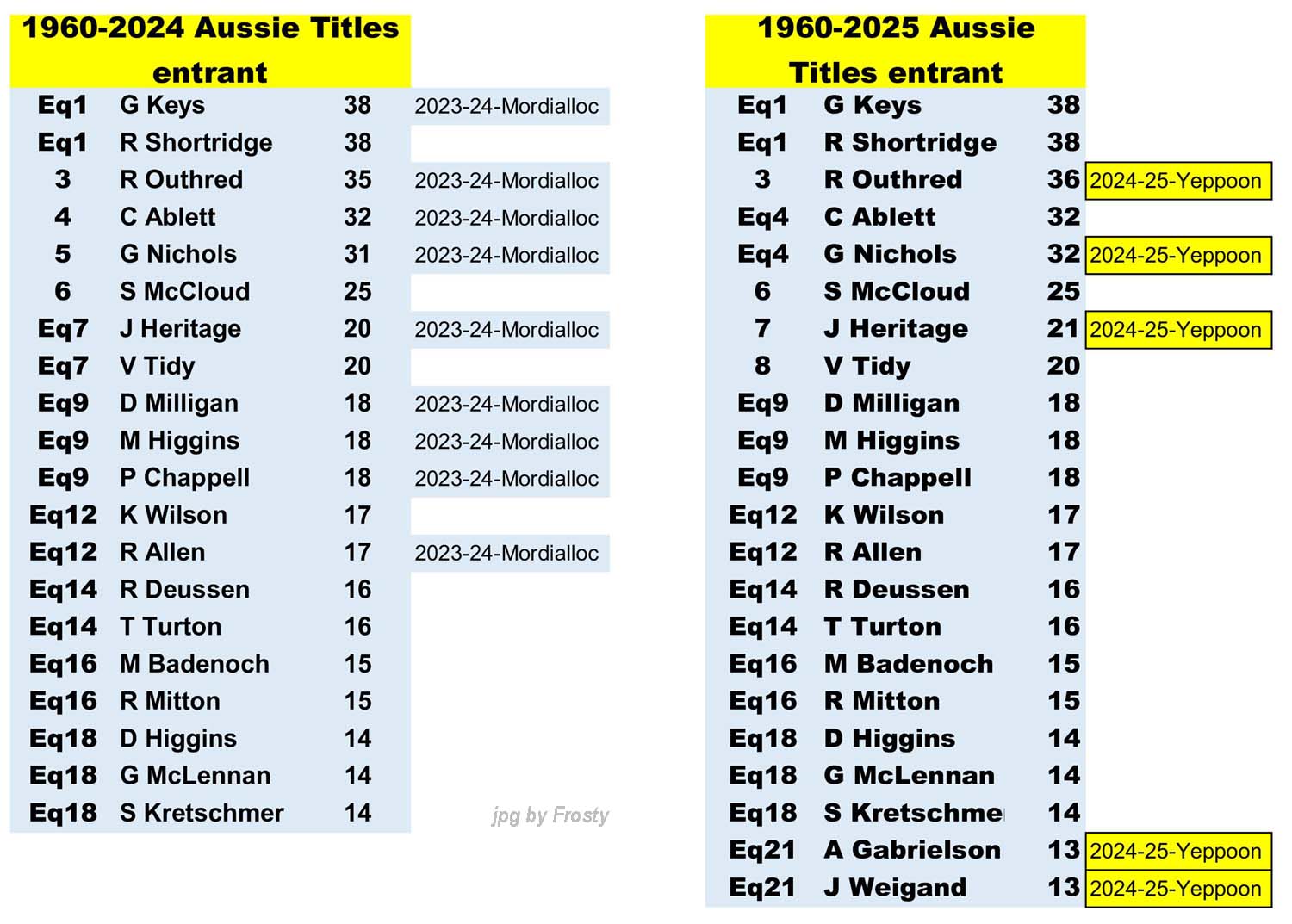 Ferret aka Keysies and Shorty still lead but Rick is only 2 Titles away from Equal 1st. You can do it, Rick.