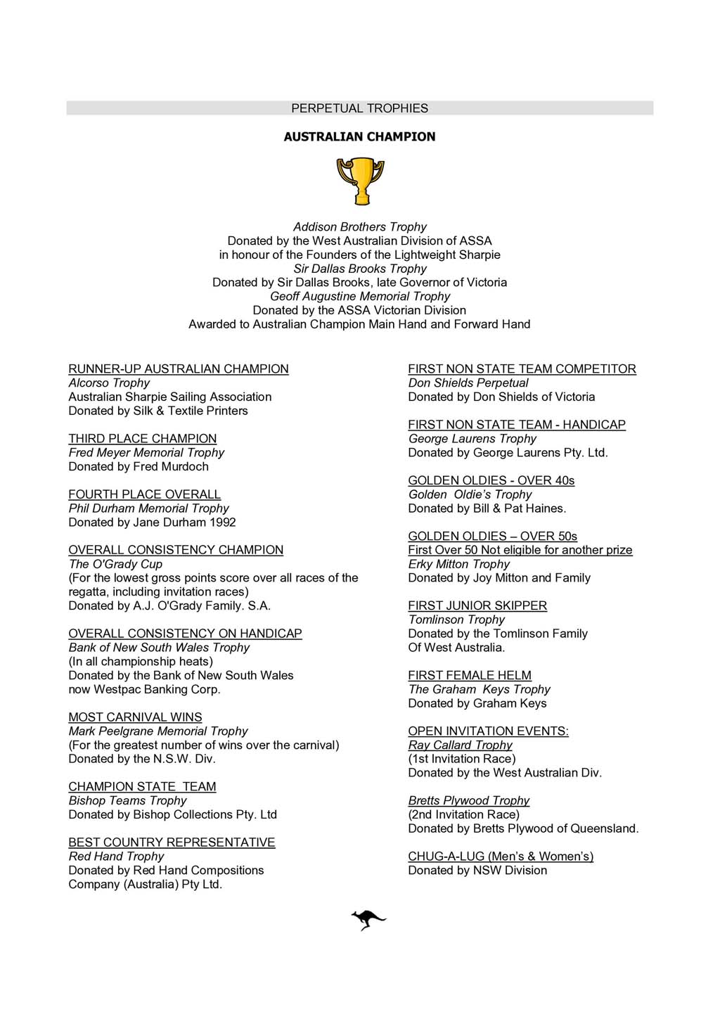 - Bank of NSW Trophy (Overall Handicap)