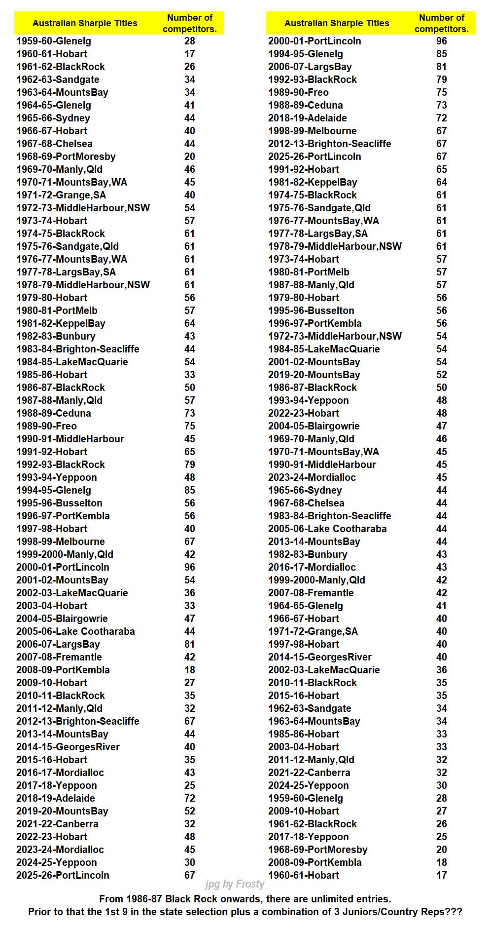 (How Sharpie photography has changed since my 1st Aussie Titles, way back in 1970 at RQYS, Qld.